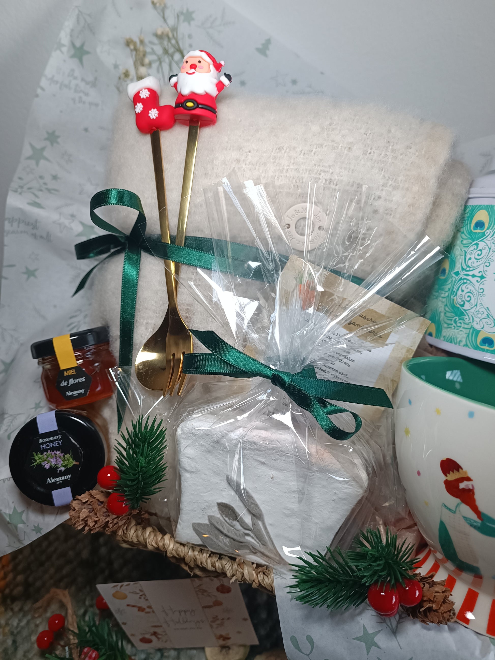 La cesta de Navidad "Reyes Magos" mezcla lo mejor de la temporada: accesorios acogedores, tés reconstituyentes, tazas navideñas ... Celebra con estilo y calidez, haciendo que cada momento sea especial.